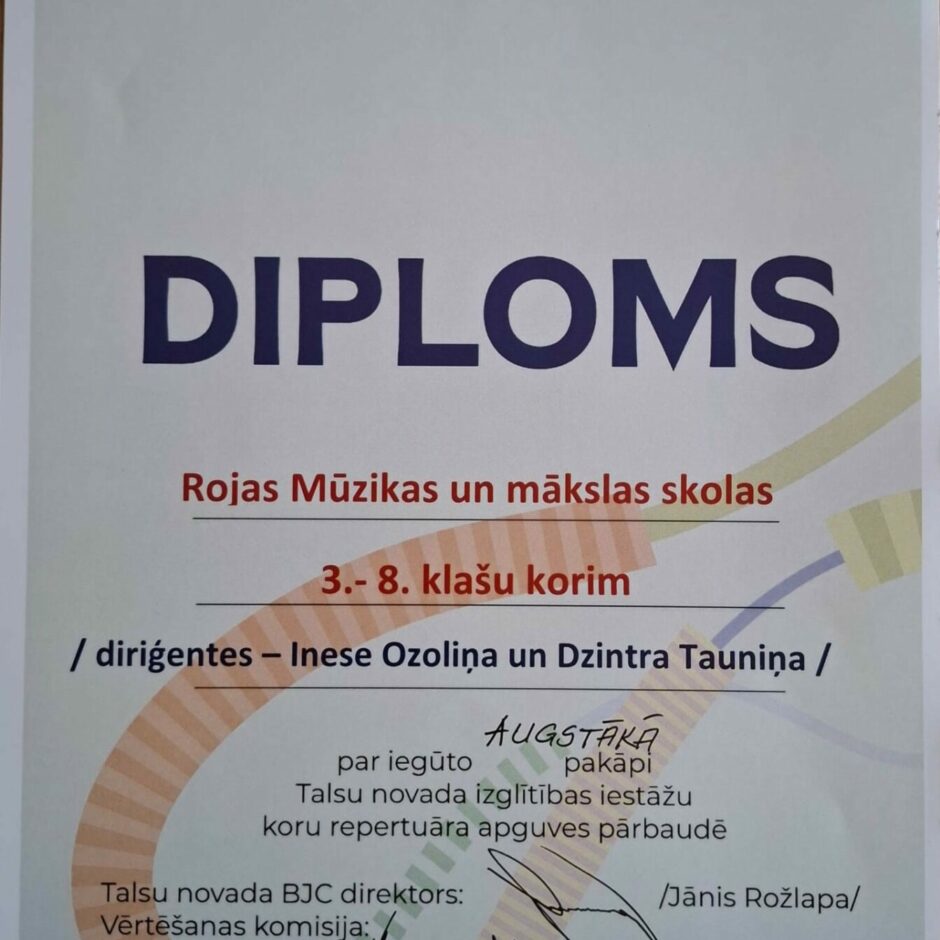 Gatavojoties XIII Latvijas skolu jaunatnes dziesmu un deju svētkiem, šodien skolas 3.-8.klašu koris “Roja” (ped.I.Ozoliņa, Dz.Tauniņa, kcm. B.Petkeviča) aizvadīja 1.koru skates kārtu, iegūstot Augstākās pakāpes diplomu!