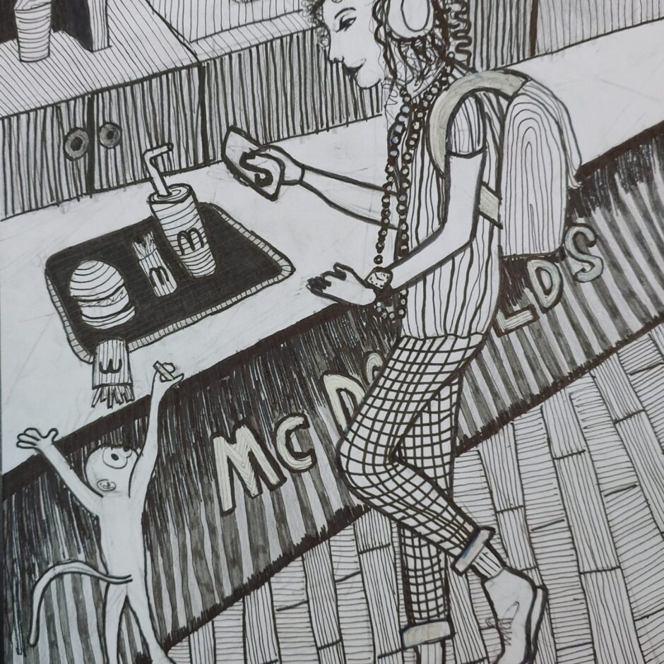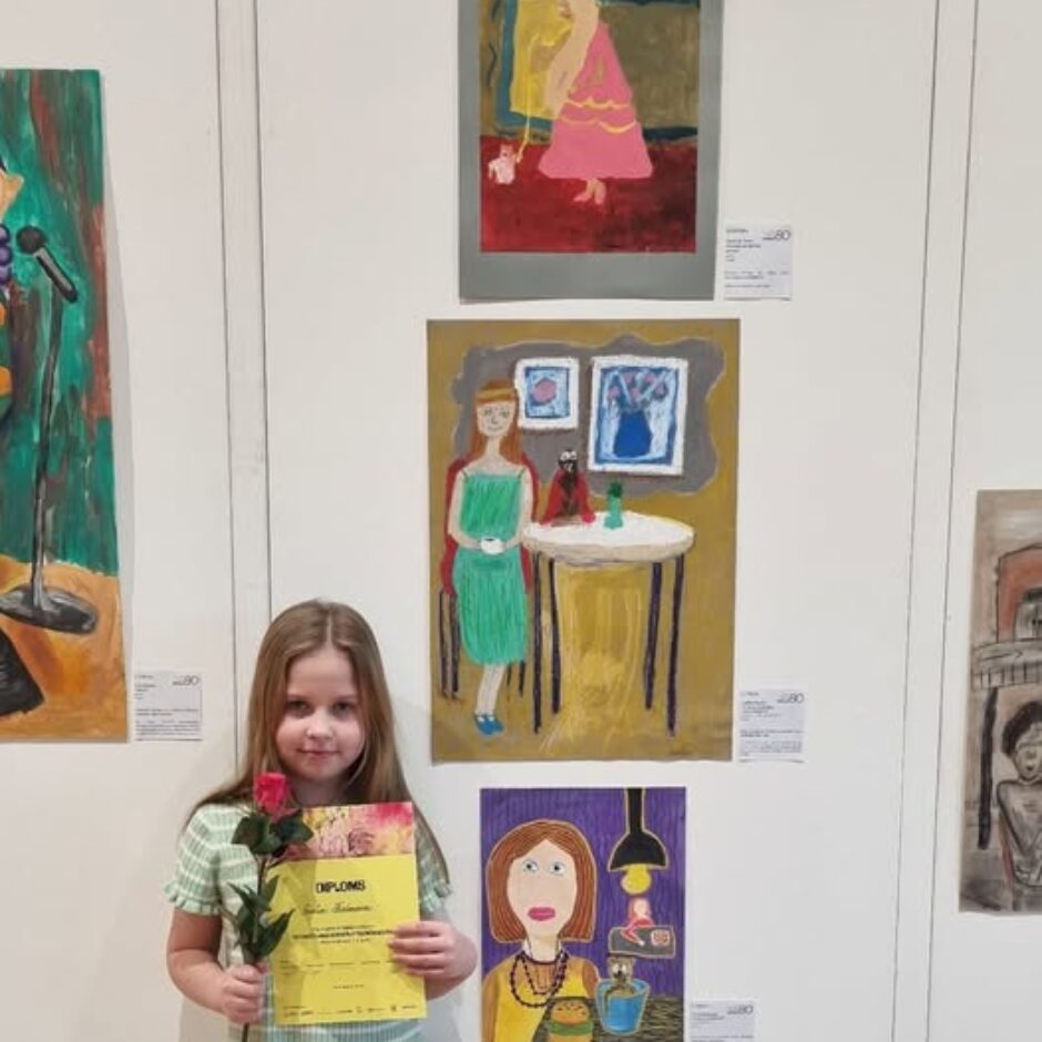 Lielā konkurencē Grieta Kalmane (ped.L.Reine-Smilgaine) ar jauktā tehnikā radītu darbu “Princese burgernīcā” ieguva 3. vietu un 30, 00 EUR naudas balvu.