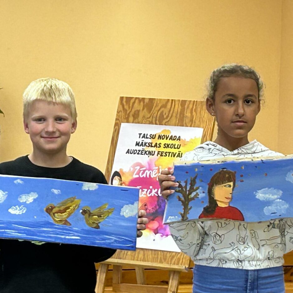 No Rojas Mūzikas un mākslas skolas festivālā piedalījās Džesika Helena Jemane, Edijs Šteinbergs, Grēta Maškevica. Grēta savā darbā abstrakti atveidoja skaņdarbu “Četras Vārnas”, bet Edija un Džesikas skaņdarbs bija “Zaķu deja”, kas vairāk pietuvināts ainavām. Noslēgumā skolēni saņēma pateicības par dalību festivālā. Šī diena bija mākslinieciski piepildīta un radoša. Paldies Valdemārpils Mūzikas un mākslas skolai par festivāla organizēšanu! Paldies direktorei B. Beraģei par atbalstu dalībā šajā festivālā! Paldies audzēkņiem par ieinteresētību un aktīvu darbošanos!