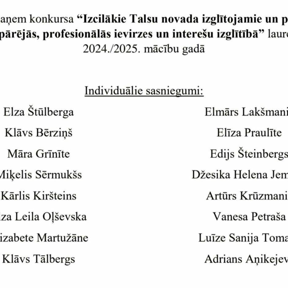 No sirds lepojamies ar saviem audzēkņiem, sakot paldies pedagogiem un vecākiem, kas šiem jauniešiem palīdz gūt sasniegumus!
