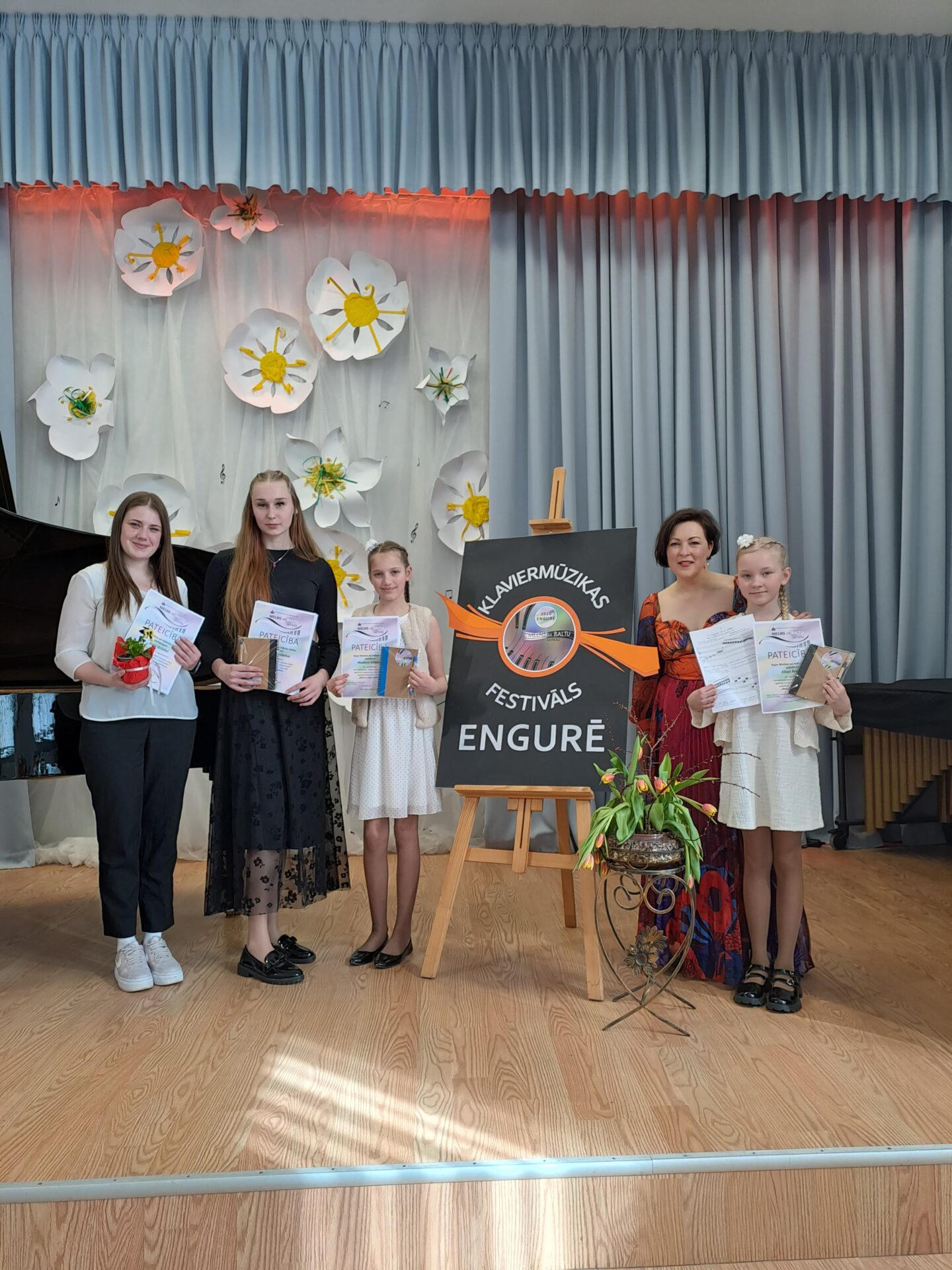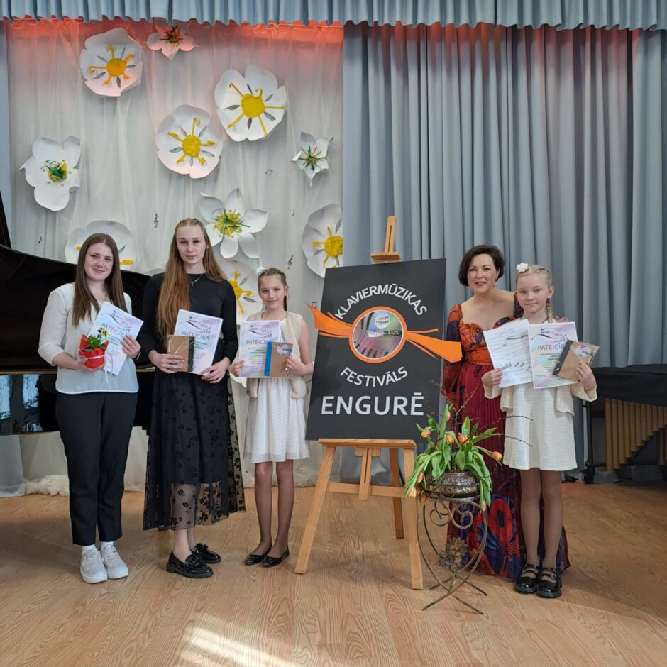 aprīlī pedagoģe Ieva Grīnīte ar audzēknēm Landu Grosbahu, Elīzu Ārgali un Madaru Klīdzēju devās uz Enguri, lai piedalītos Ziemeļkurzemes reģiona mūzikas skolu klaviermūzikas festivālā “Melns ar baltu satikās”. Paldies pedagoģei I.Grīnītei par audzēkņu sagatavošanu festivālam! Paldies meitenēm par izturību divu dienu garumā, pārstāvot skolas vārdu!