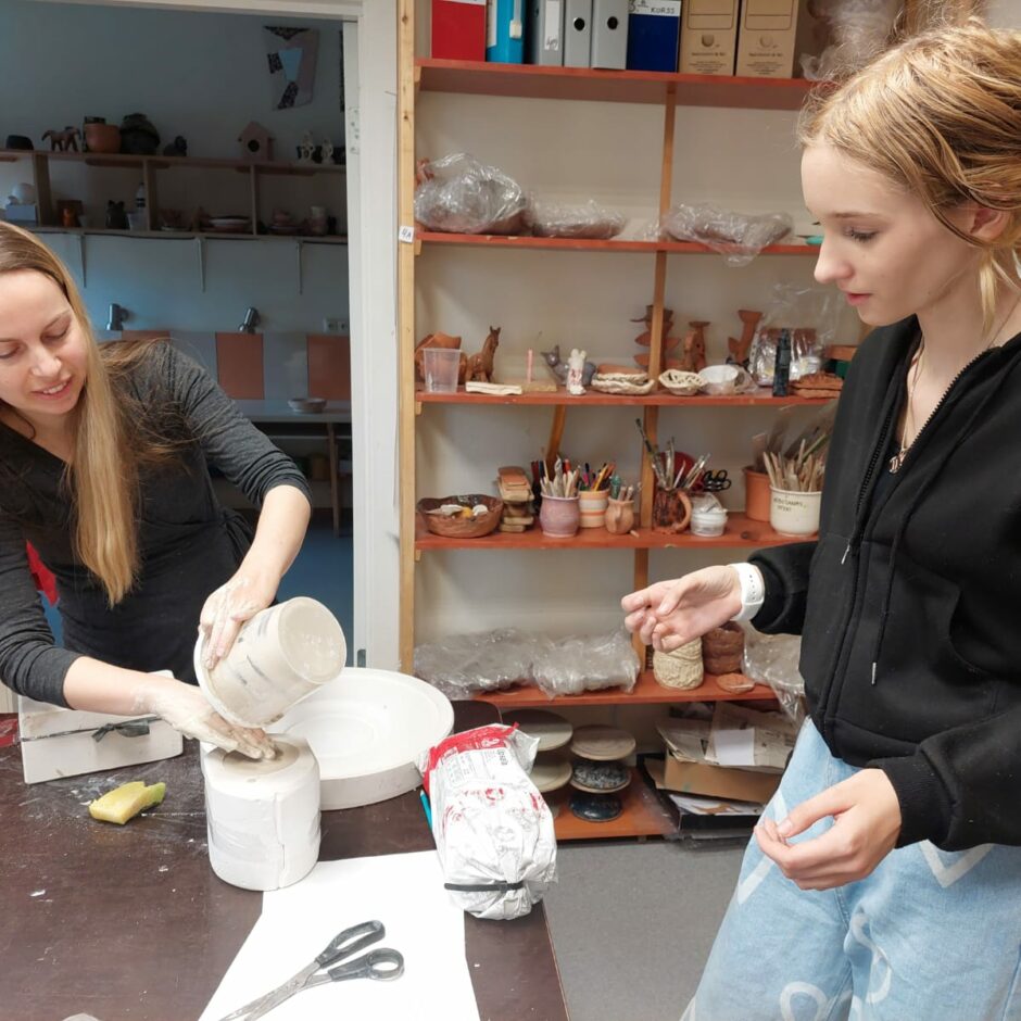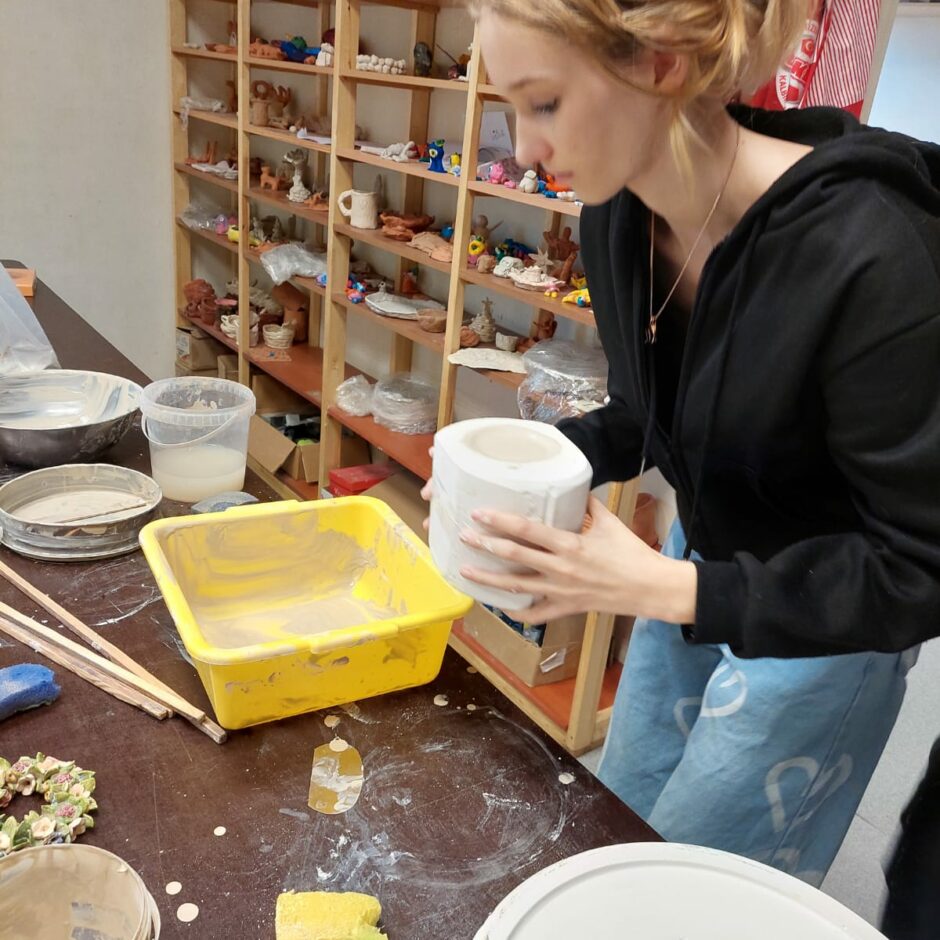 Pirmdien, 17. aprīlī, vizuāli plastiskās mākslas audzēkne Amanda Lindsija Petraša kopā ar skolotāju Līgu Reini-Smilgaini devās uz Talsu Mākslas skolu, lai piedalītos porcelāna liešanas meistarklasē pie skolotājas Ineses Križanovskas. Meistarklasē tika apgūts, kā porcelānu atliet ģipša formās, kā darboties ar akmens masu, kā arī skolotāja dalījās pieredzē par porcelāna specifiku un niansēm, kas jāņem vērā, ar to darbojoties. Iegūtās zināšanas noderēs Amandas diplomdarba izstrādē. Paldies Talsu Mākslas skolai, īpaši skolotājai Inesei Križanovskai un direktorei Katrīnai Vīnertei par uzņemšanu un nodotajām zināšanām!