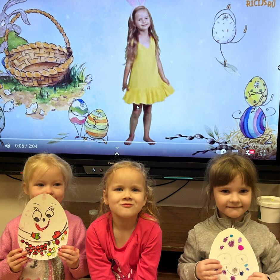 Sagatavošanas grupas mazie mākslinieki šīs nedēļas nodarbībā iejutās “Olu tracis Lieldienās” – Lauris & Sofijas muzikālā skaņdarba attēlošanā. Protams, mēs vēl esam mazi, bet ar savu skatījumu. Nevaram arī aizmirst zaķēnus, kas mūs apciemo ar grafisko elementu kažociņu. Esam priecīgi un gaidām svētkus!