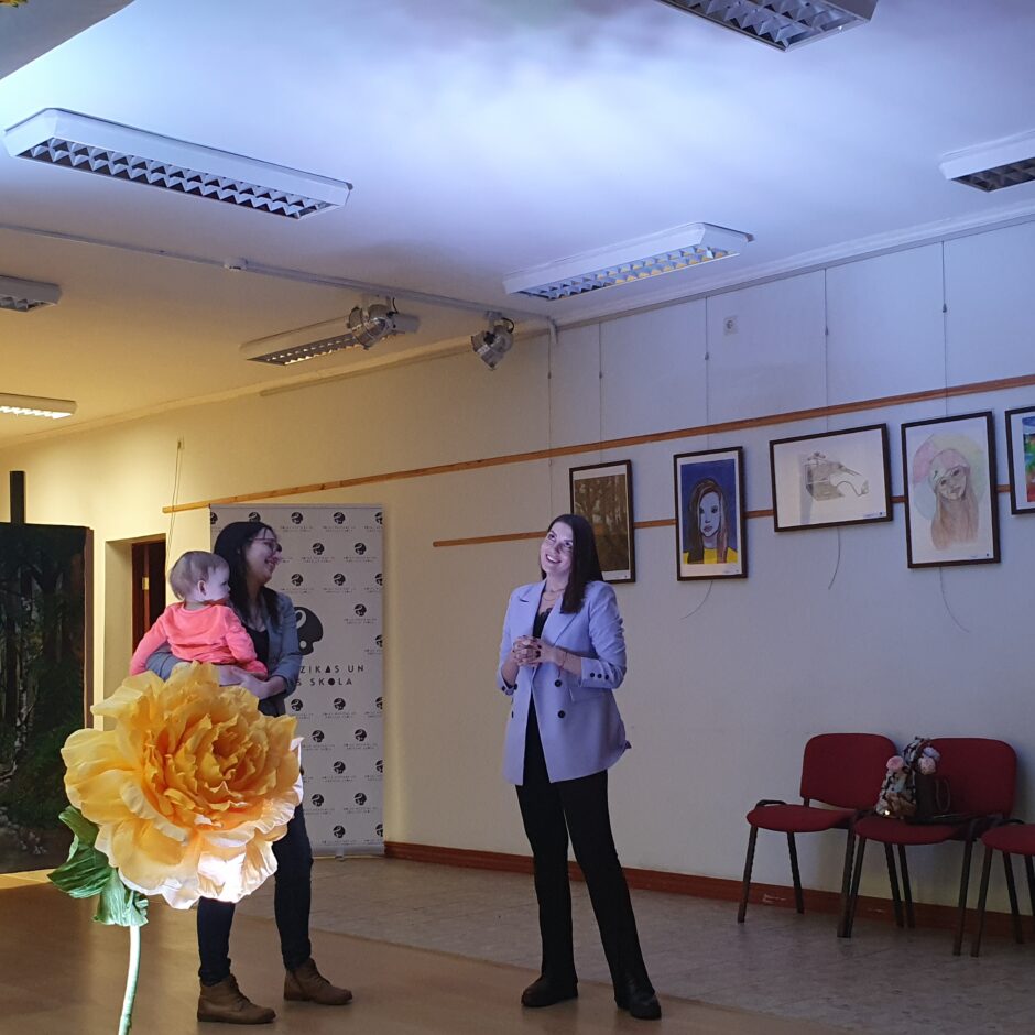 6. februārī Rojas Mūzikas un mākslas skolas Vizuāli plastiskās mākslas nodaļā viesojās Annika Petraškeviča, kura audzēkņiem pasniedza nodarbību publiskās uzstāšanās prasmēs. Vizuālās mākslas nodaļa jau kopš I semestra ir cītīgi gatavojusi T- kreklu kolekciju Valsts konkursam. Annika Petraškeviča mums parādīja dažādas nianses, lai labāk varētu iznest savu tērpu. Protams, skatuves kultūrai ir svarīga stāja un cilvēku kustība, kas, skanot mūzikai, saplūst vienā ritmā. Nodarbībā tika pārrunātas prezentēšanas prasmes un metodes, kā pārvarēt bailes uzstājoties. Liels paldies Annikai par pārdomāto tikšanos! Paldies par šo iespēju skolas vadībai un mācību daļai!